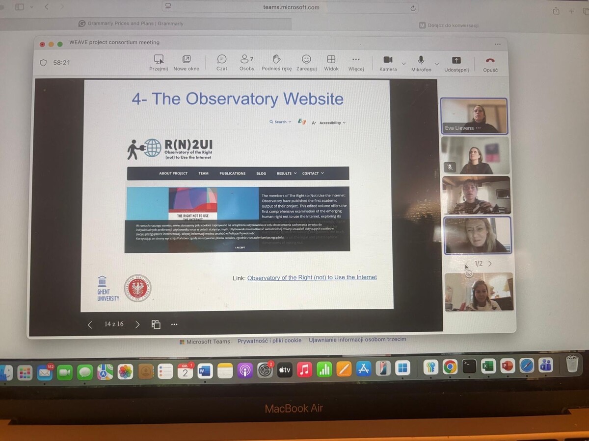 On 2 December 2025, the partners of the Observatory of the Right (Not) to Use the Internet - R(N)2UI convened for an online consortium meeting held via Internet. The session brought together members of the research team to review the project’s progress, refine the ongoing research agenda, and discuss the next stages of implementation.